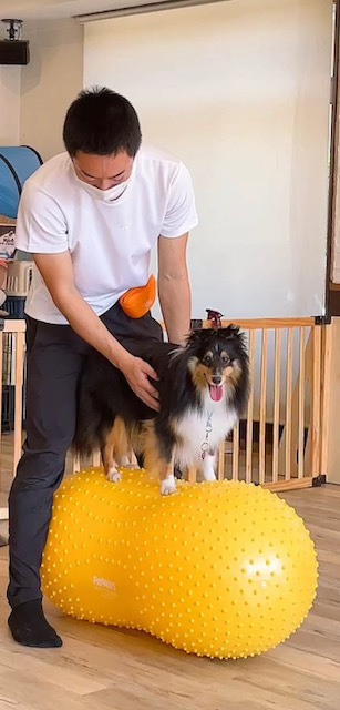 さらにオーナー様からご相談をうけた問題行動の改善、バランスボールやノーズワーク等のエクササイズ。